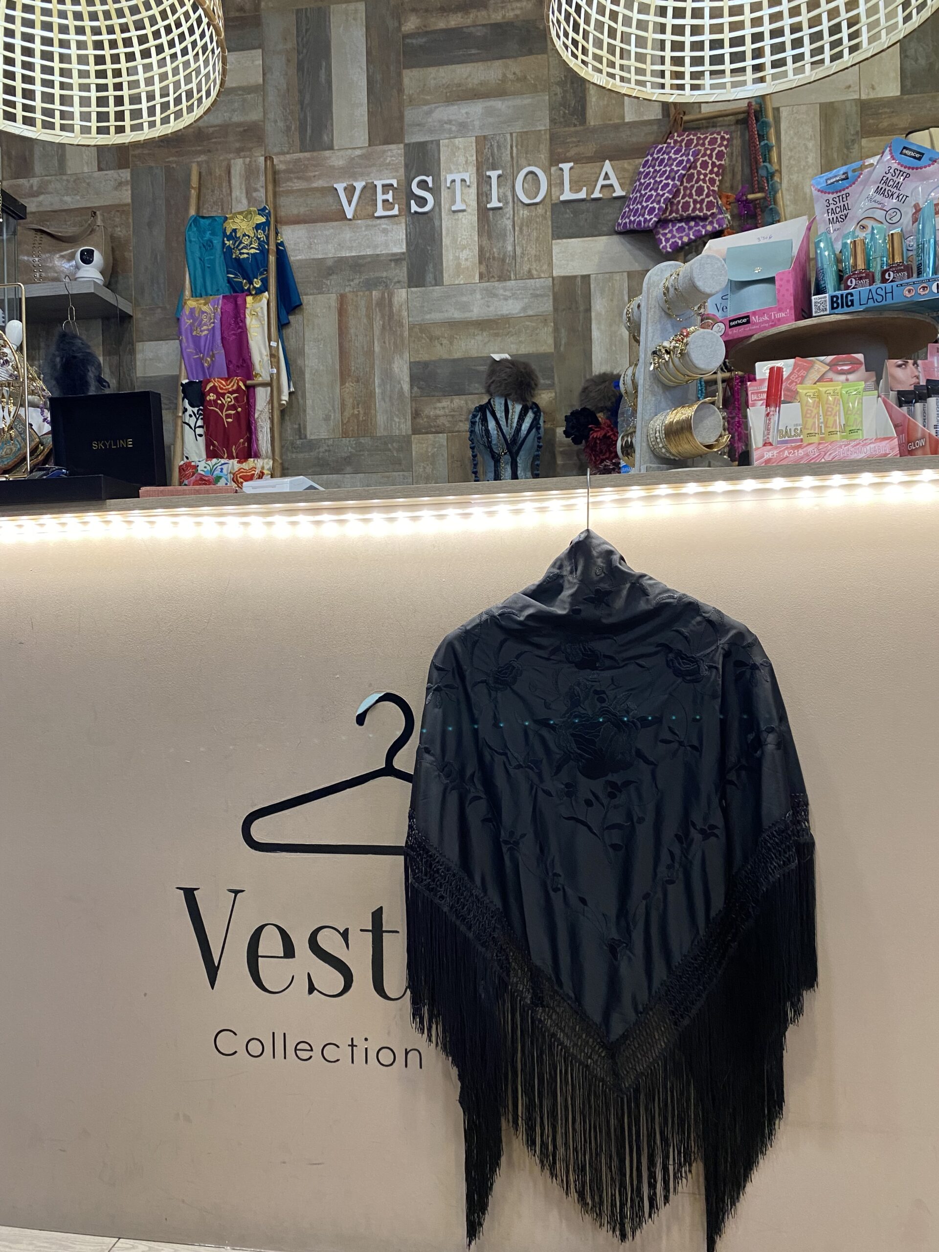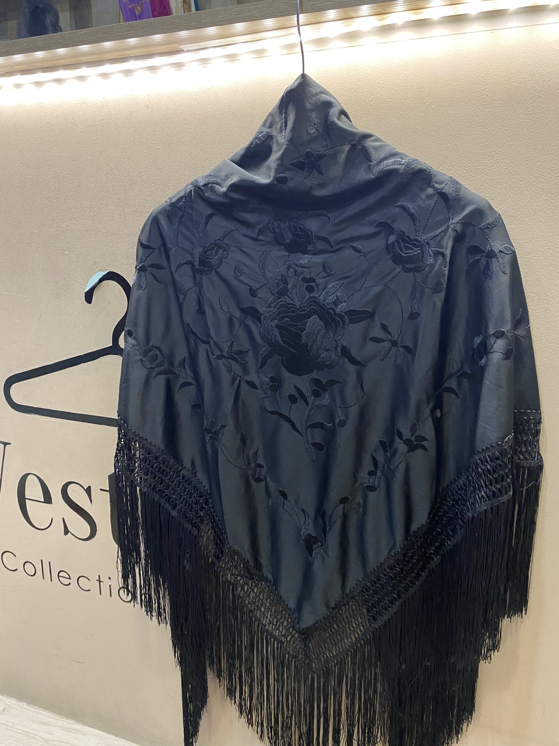 Mantón negro bordado negro