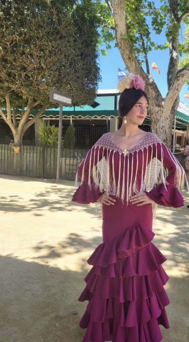 Vestido flamenca burdeos tela talla S